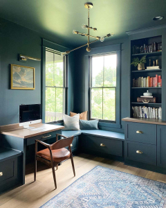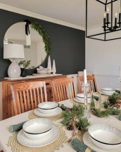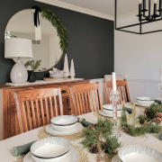 During the holidays, the dining room can become a cramped and crowded hub for hosting. For a more spacious feel, create the illusion of depth with color. A dark hue like Iron Ore can achieve this while also bringing an elevated look to the space. Paint just an accent wall or cover walls and trim with the same color to soften angles and evoke the impression of expansiveness.