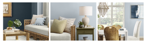 Embrace the simple comfort of a shade that captures the limitless wonder of a bright summer sky. Upward’s breezy, pale hue gently washes living spaces with its buoyant, uplifting energy, effortlessly crafting an airy yet inviting atmosphere. Its serene character, reminiscent of the tranquil beauty of the seaside, is perfect for a coastal-inspired interior. The deep marine-blue of Gale Force – the anchor of this month’s palette – grounds the mostly neutral space, providing balance and a note of cozy moodiness.